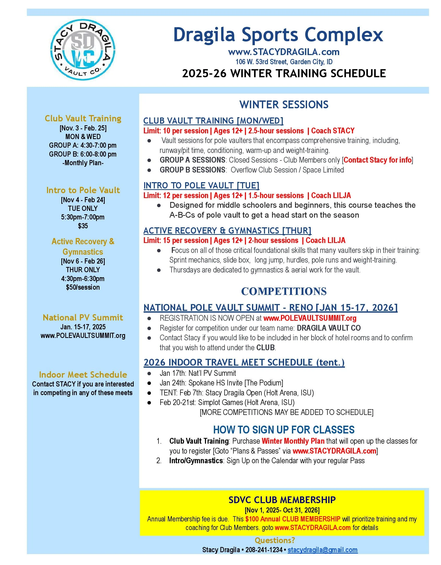 Stacy Dragila brings the elite pole vault experience to the Treasure Valley at The Stacy Dragila Sports Complex featuring indoor and outdoor pole vault for all-year training. The Complex also features a new weight room to compliment the wide range of equipment already available. The space is big enough to host a camp and perfectly sized for a private lesson!