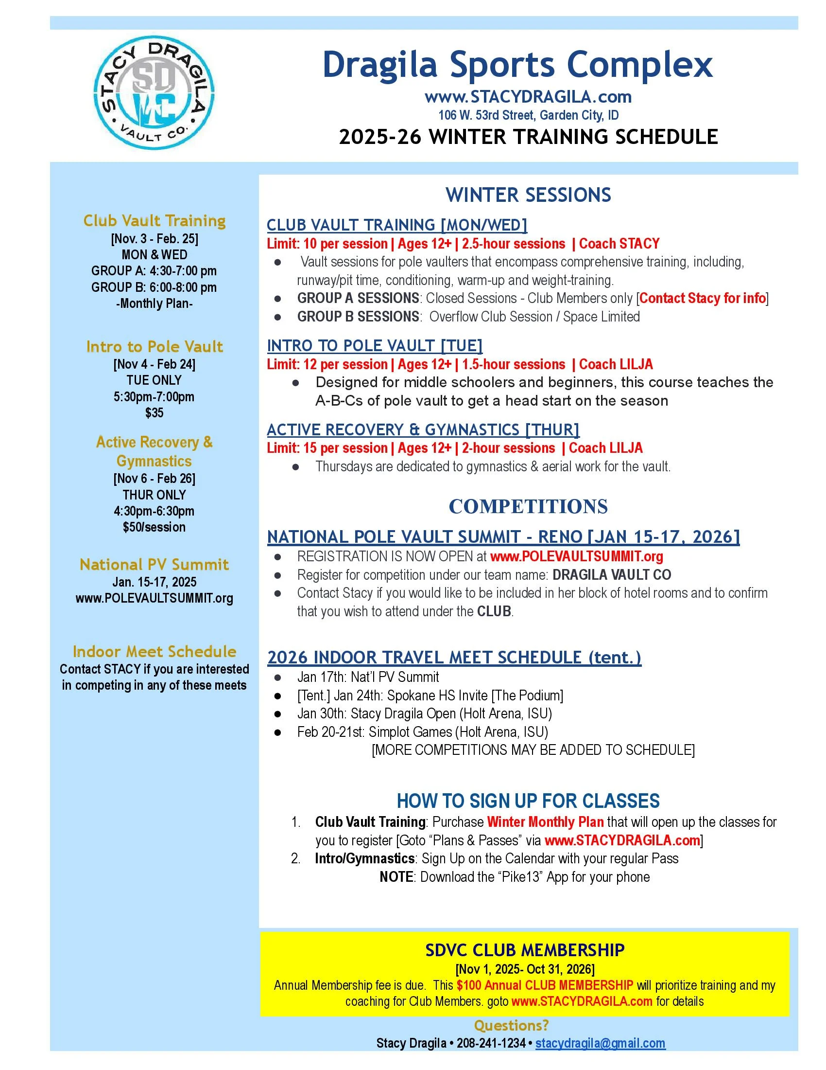 Stacy Dragila brings the elite pole vault experience to the Treasure Valley at The Stacy Dragila Sports Complex featuring indoor and outdoor pole vault for all-year training. The Complex also features a new weight room to compliment the wide range of equipment already available. The space is big enough to host a camp and perfectly sized for a private lesson!